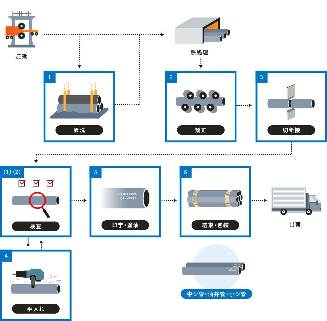 酸洗作業 矯正 製品切断 手入 製品印字 結束 非破壊検査