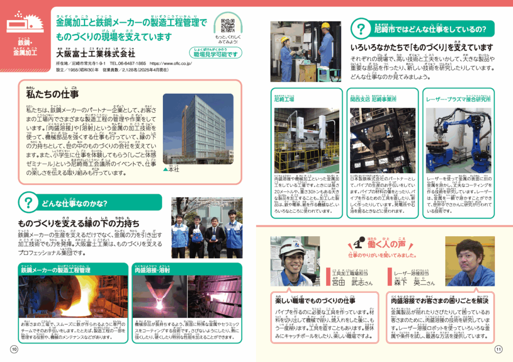 「小学生のためのお仕事ノート 尼崎市版」に掲載しました!昨年に引き続き「小学生のためのお仕事ノート 尼崎市版(発行元:株式会社中広)」の2025 年度版に尼崎の地元企業として掲載いたしました。「小学生のためのお仕事ノート」は、文部科学省が推進するキャリア教育の副教材として、全国では28都道府県で配布しています。尼崎市の小学校(43校)では3年生、4年生を対象に配布(発行部数:7,200部)されています。当社は一般消費者の方にはあまりなじみの無い会社ですので、子供たちにも当社を知ってもらいたく今回の掲載となりました。ぜひご覧ください。