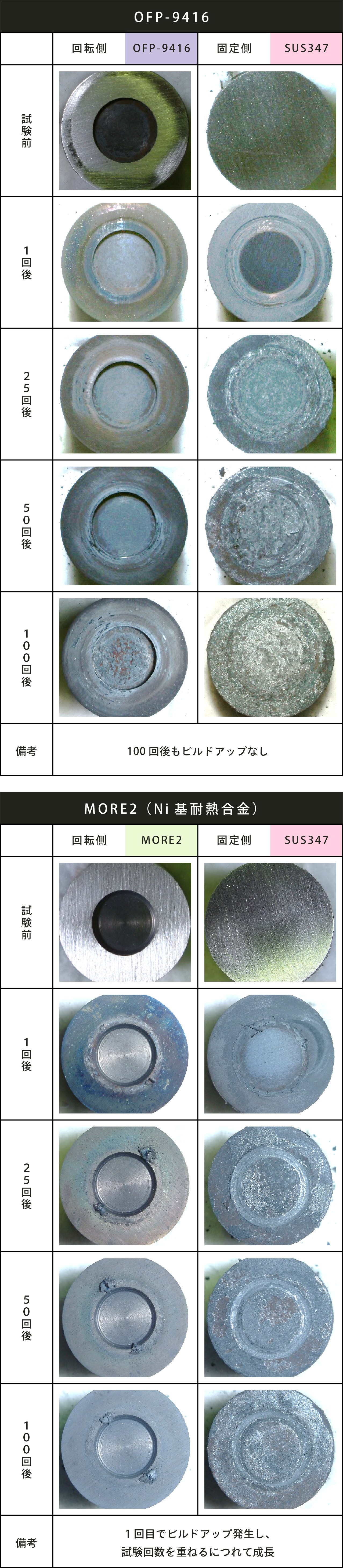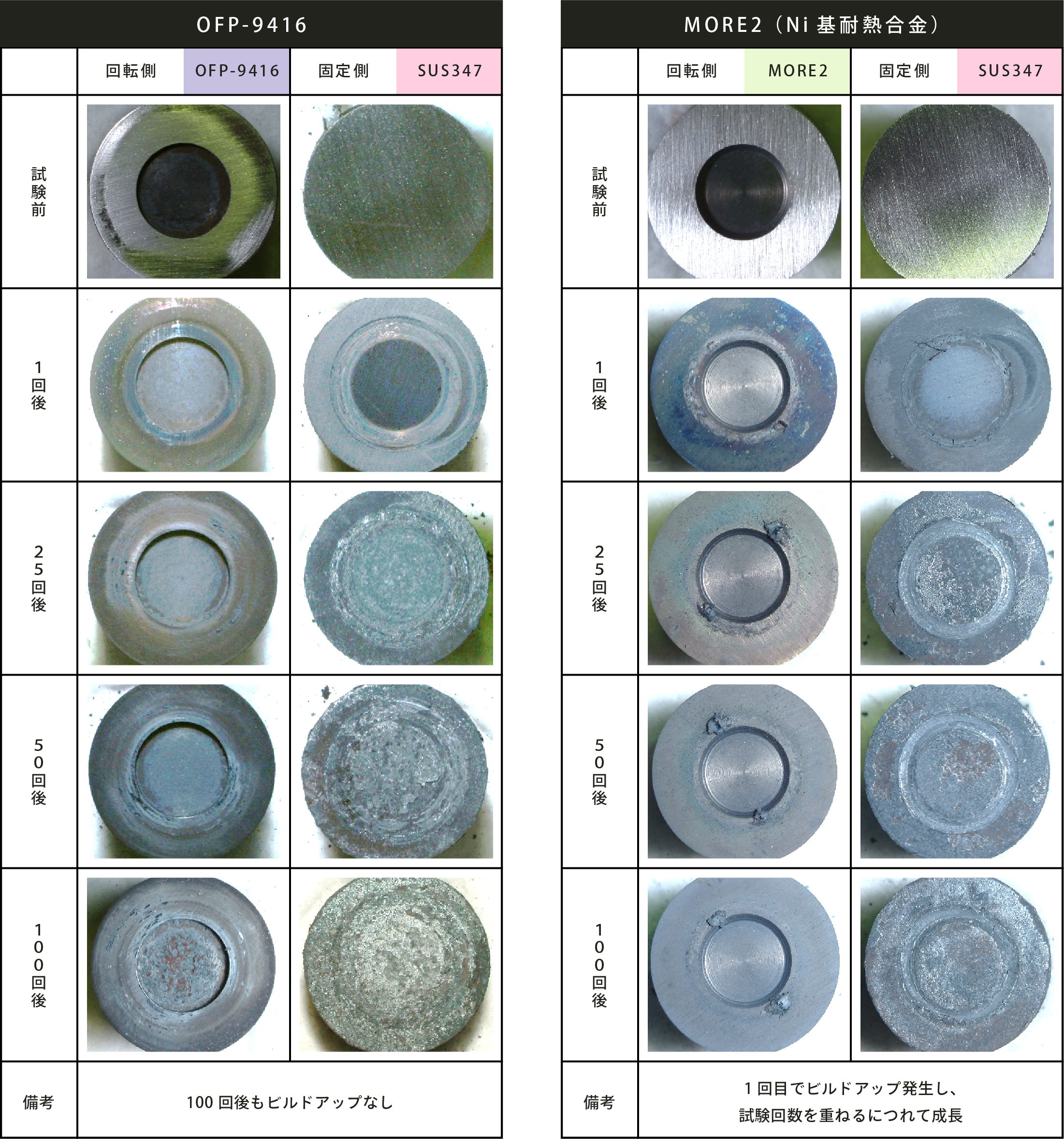 回転側 → OFP-9416、MORE2(Ni基耐熱合金)